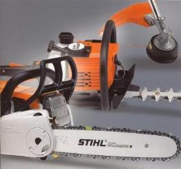 Wir benutzen verschieden, große Kettensägen/Motorsägen, Freischneider, Heckenscheren und Motorsensen auschließlich von der Firma Stihl.