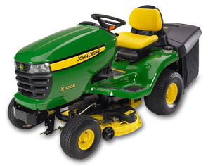 Einer unserer 3 Aufsitzmäher: Rasentraktor John Deere X300R mit Auffangkorb